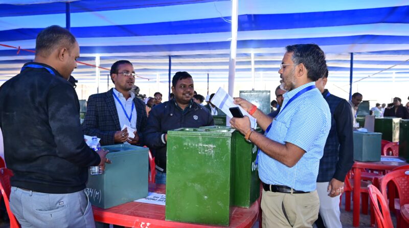 नगरपालिका आम निर्वाचन 2026 के सफल एवं निष्पक्ष संचालन को लेकर झंडा मैदान स्थित डिस्पैच सेंटर से मतदान कर्मियों को मतदान केंद्रों के लिए रवाना किया गया..
