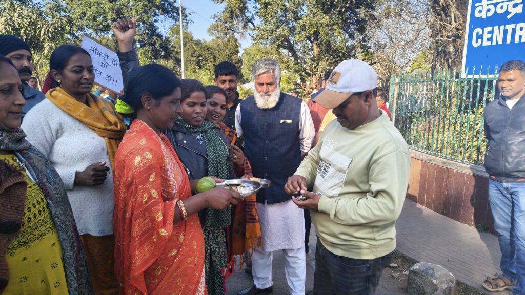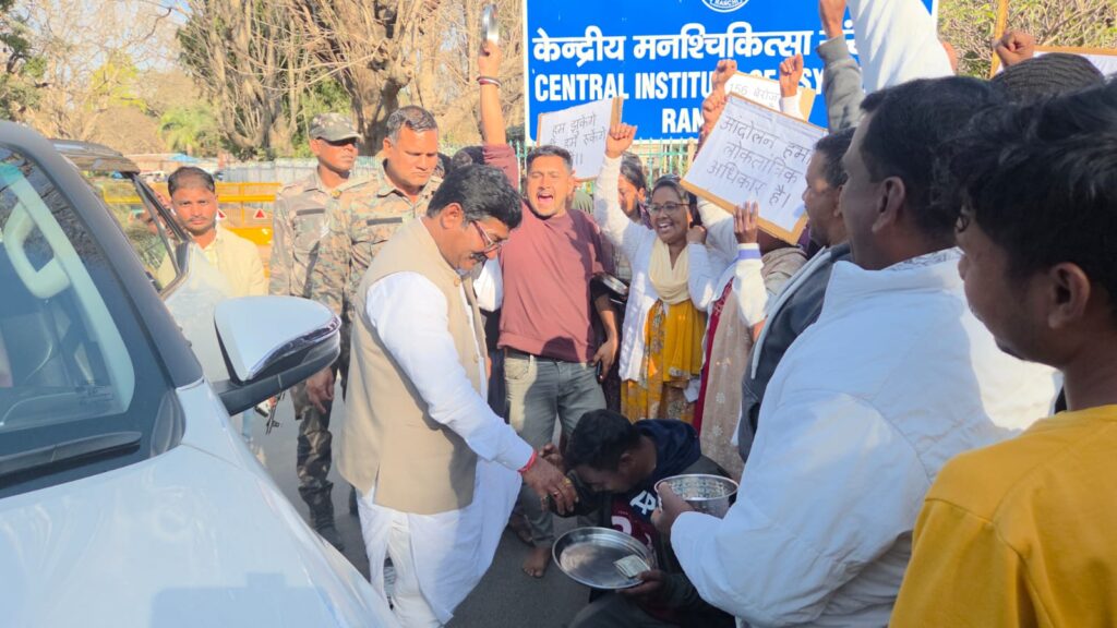 कांके / रांची:केंद्रीय मानसिक चिकित्सालय (CIP) कांके में कार्यरत निजी सुरक्षाकर्मियों ने बिना किसी पूर्व सूचना के सेवा से हटाए जाने के विरोध में सातवें दिन भी अपना आंदोलन जारी रखा। सीआईपी सुरक्षाकर्मी अधिकार संघर्ष के बैनर तले आंदोलन कर रहे सुरक्षाकर्मियों ने मंगलवार को अपनी पीड़ा को उजागर करने के लिए भिक्षाटन जैसा अनोखा और प्रतीकात्मक विरोध प्रदर्शन किया।